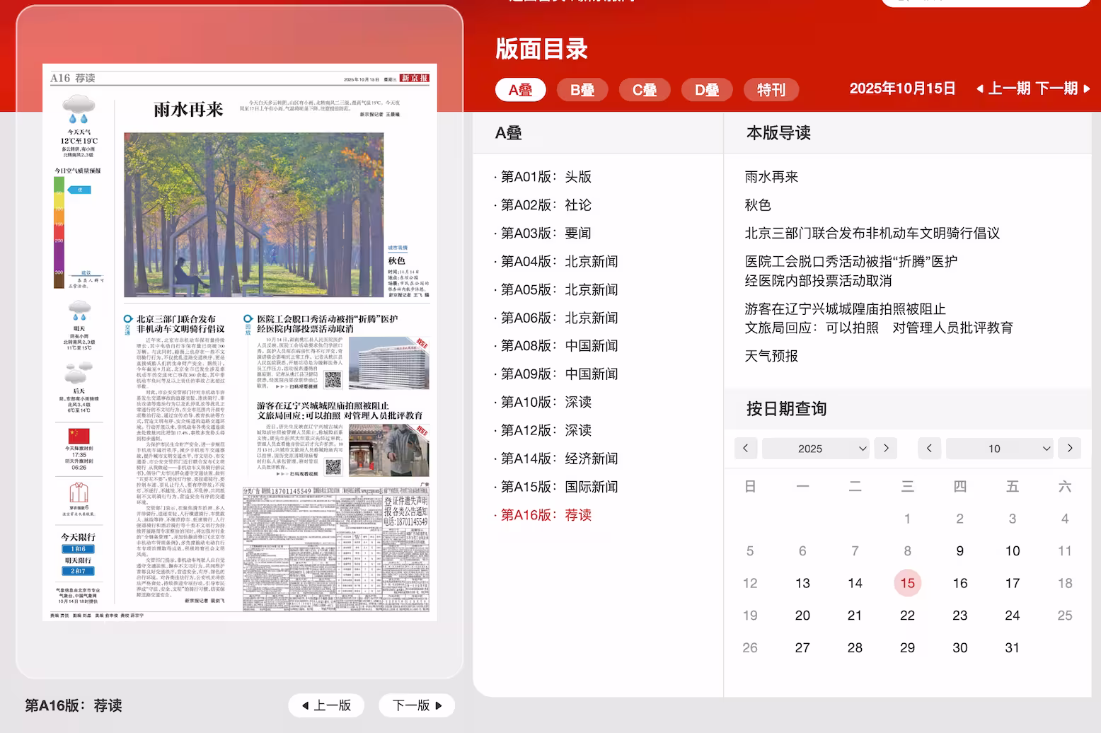 青小蛙还去核实了一下这个消息,在2025年10月15日的《新京报》A16版:荐读的广告区域(电子版),有一份内容: