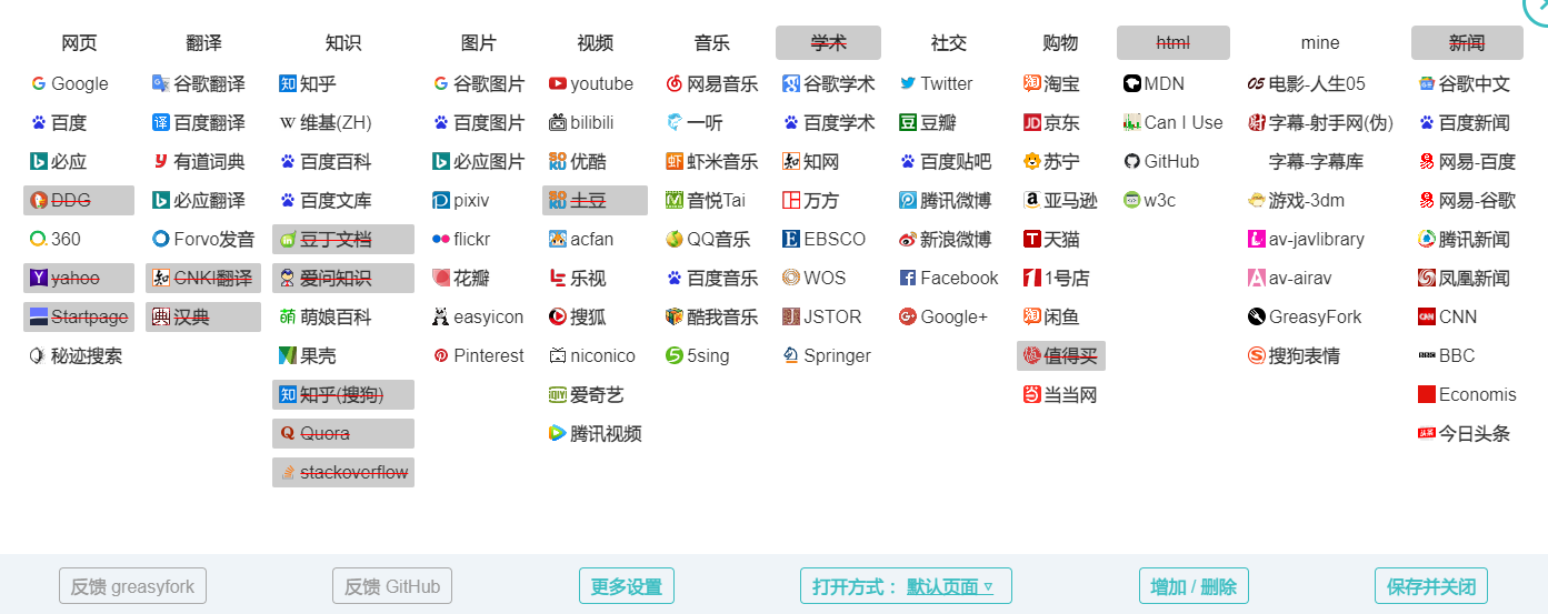 除了内置的 200+ 网站,还可以自定义搜索引擎来添加网站: